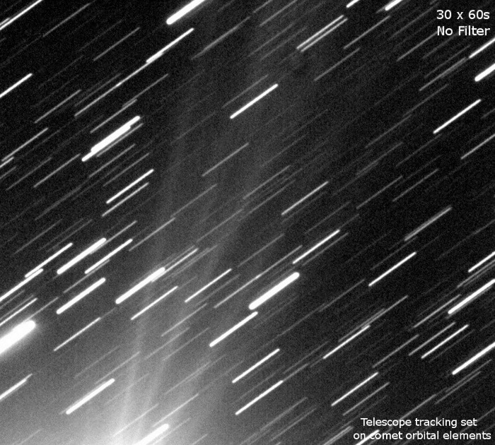 (Copyright Jean-Francois Soulier)Nuclear magnitude (m2) 10.3 Aperture radius used for m2 6.9 " r (dist/Sun) 1.443 AU d (dist/Earth) 0.698 AU Right ascension 06 33 23.53 h m s Declination -38 15 57.1 ° ' " MPC report COD W96