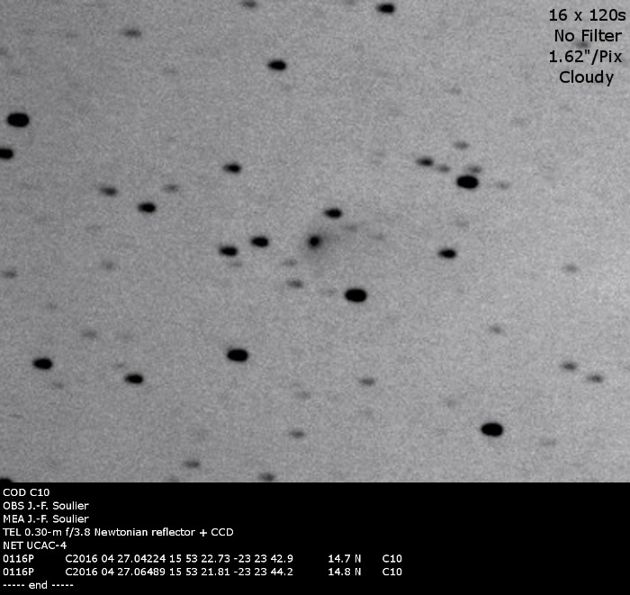0116P C2016 04 27.06489 15 53 21.81 -23 23 44.2 14.8 N C10