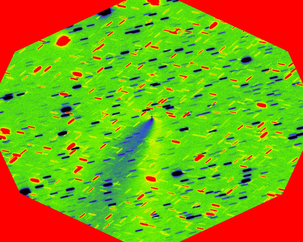 (Copyright Francois Kugel)Coma Total magnitude (m1) 11.5 Aperture radius used for m1 0.4 ' Nuclear magnitude (m2) 14.2 m2 standard deviation 0.1 Aperture radius used for m2 5.8 " r (dist/Sun) 2.210 AU d (dist/Earth) 1.541 AU Right ascension 02 54 29.07 h m s Declination +56 32 24.1 ° ' " MPC report COD A77