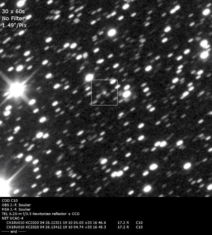 CK18U010 KC2020 04 26.13412 19 10 04.74 +33 16 48.3 17.2 R C10
