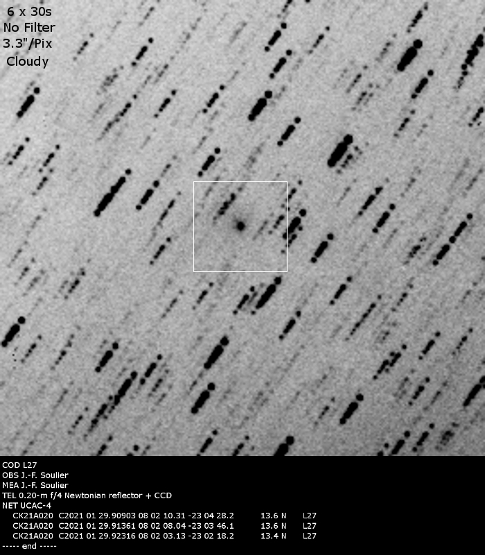 CK21A020 C2021 01 29.92316 08 02 03.13 -23 02 18.2 13.4 N L27