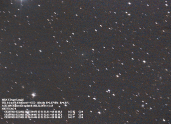 (Copyright Yoann Degot Longhi)Nuclear magnitude (m2) 16.4 m2 standard deviation 0.1 Aperture radius used for m2 6.81 " r (dist/Sun) 2.727 AU d (dist/Earth) 2.133 AU Right ascension 13 51 51.81 h m s Declination +28 22 48.6 ° ' " MPC report COD G20