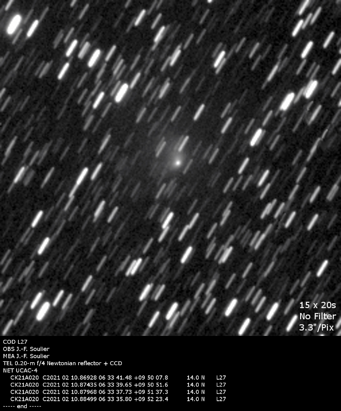 CK21A020 C2021 02 10.86928 06 33 41.48 +09 50 07.8 14.0 N L27