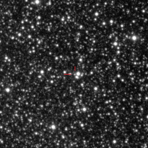 (Copyright Francois Kugel)Nuclear magnitude (m2) 17.9 m2 standard deviation 0.1 Aperture radius used for m2 5.8 " r (dist/Sun) 4.739 AU d (dist/Earth) 4.775 AU Right ascension 17 50 15.73 h m s Declination -11 55 29.3 ° ' " MPC report COD A77
