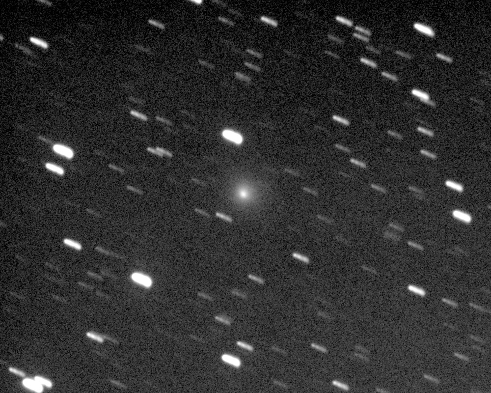 (Copyright Francois Kugel)Coma Total magnitude (m1) 10.6 Aperture radius used for m1 0.4 ' Nuclear magnitude (m2) 15.4 m2 standard deviation 0.2 Aperture radius used for m2 5.8 " Coma diameter 4 ' r (dist/Sun) 0.941 AU d (dist/Earth) 1.667 AU Right ascension 00 50 05.25 h m s Declination +23 54 01.8 ° ' " MPC report COD A77