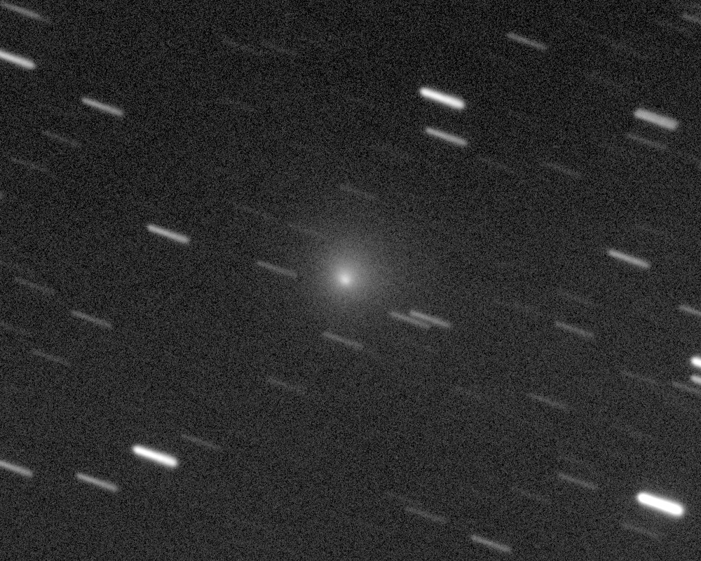 (Copyright Francois Kugel)Coma Total magnitude (m1) 11.9 Aperture radius used for m1 0.4 ' Nuclear magnitude (m2) 15.5 m2 standard deviation 0.3 Aperture radius used for m2 5.8 " r (dist/Sun) 0.986 AU d (dist/Earth) 1.685 AU Right ascension 01 22 45.09 h m s Declination +27 05 05.9 ° ' " MPC report COD A77