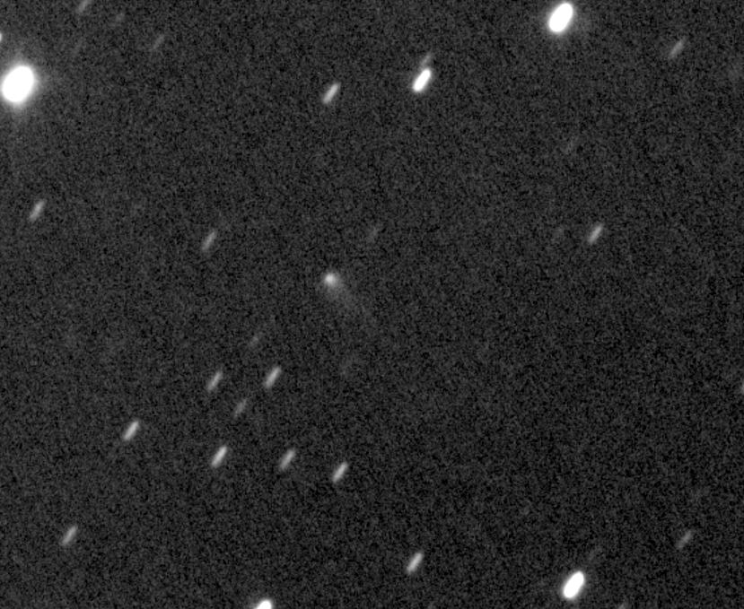 (Copyright Jean-Gabriel Bosch)Nuclear magnitude (m2) 15.3 m2 standard deviation 0.4 Aperture radius used for m2 5.8 " r (dist/Sun) 4.874 AU d (dist/Earth) 3.869 AU Right ascension 14 03 13.22 h m s Declination -13 53 32.3 ° ' " MPC report COD A77