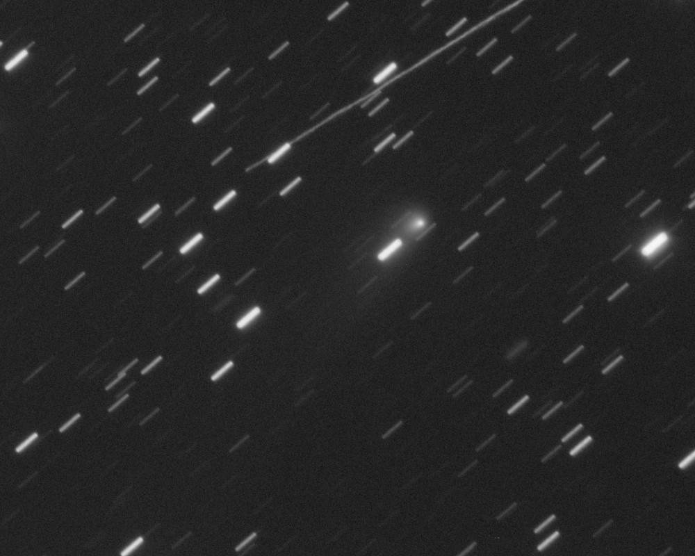 (Copyright Francois Kugel)Nuclear magnitude (m2) 14.4 m2 standard deviation 0.1 Aperture radius used for m2 5.8 " r (dist/Sun) 3.386 AU d (dist/Earth) 2.486 AU Right ascension 14 33 21.52 h m s Declination -21 16 45.4 ° ' " MPC report COD A77