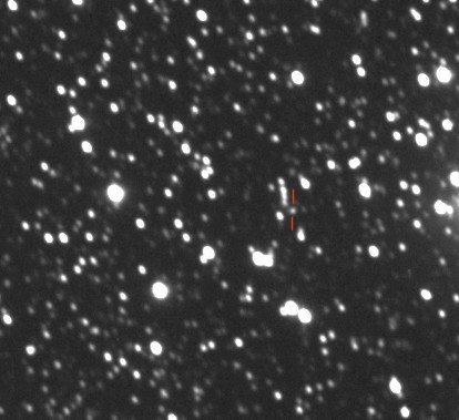 (Copyright Joel Nicolas)Nuclear magnitude (m2) 16.6 m2 standard deviation 0.1 Aperture radius used for m2 5.6 " r (dist/Sun) 3.740 AU d (dist/Earth) 3.228 AU Right ascension 18 52 48.75 h m s Declination +25 05 05.4 ° ' " MPC report COD A77