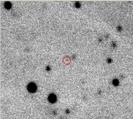 (Copyright Francois Kugel)Nuclear magnitude (m2) 17.1 m2 standard deviation 0.4 Aperture radius used for m2 5.8 " r (dist/Sun) 5.333 AU d (dist/Earth) 5.484 AU Right ascension 09 08 21.52 h m s Declination -31 25 51.3 ° ' " MPC report COD A77