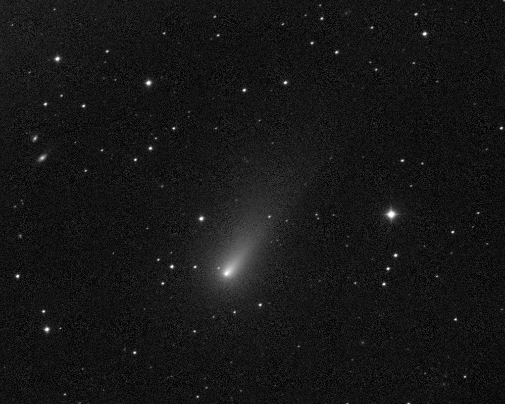 (Copyright Francois Kugel)Coma Total magnitude (m1) 11.3 Nuclear magnitude (m2) 13.8 m2 standard deviation 0.0 Aperture radius used for m2 5.8 " r (dist/Sun) 1.314 AU d (dist/Earth) 1.401 AU Right ascension 11 58 26.67 h m s Declination +34 28 17.2 ° ' " MPC report COD A77