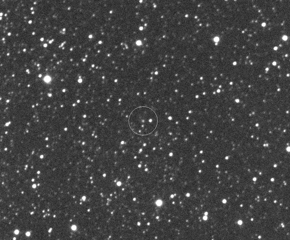 (Copyright Francois Kugel)Nuclear magnitude (m2) 15.4 m2 standard deviation 0.2 Aperture radius used for m2 5.8 " r (dist/Sun) 3.085 AU d (dist/Earth) 3.573 AU Right ascension 18 44 03.72 h m s Declination +02 05 44.9 ° ' " MPC report COD A77