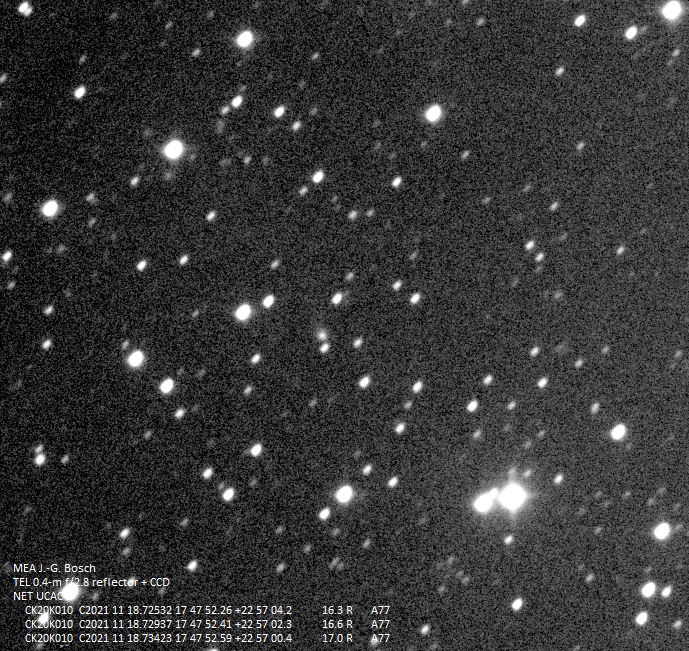 CK20K010 C2021 11 18.72937 17 47 52.41 +22 57 02.3 16.6 R A77