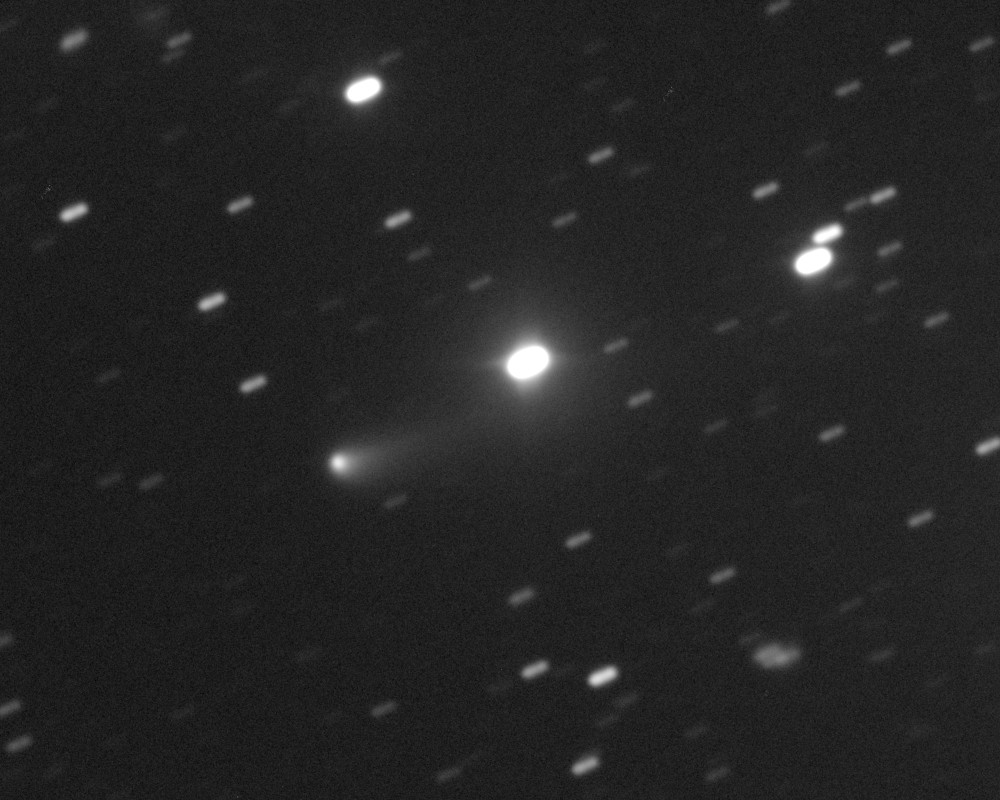 (Copyright Francois Kugel)Coma Total magnitude (m1) 14.3 Aperture radius used for m1 0.4 ' Nuclear magnitude (m2) 15.6 m2 standard deviation 0.0 Aperture radius used for m2 5.8 " r (dist/Sun) 2.486 AU d (dist/Earth) 1.535 AU Right ascension 10 01 35.63 h m s Declination +17 34 58.6 ° ' " MPC report COD A77
