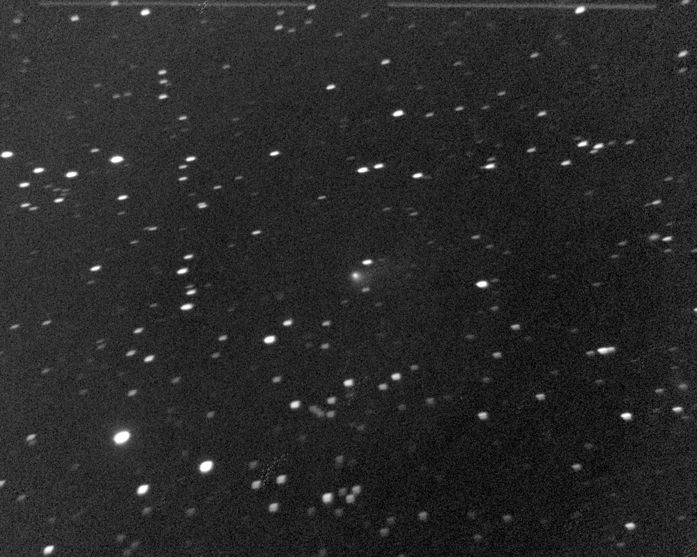 (Copyright Francois Kugel)Coma Total magnitude (m1) 12.9 Aperture radius used for m1 0.6 ' Nuclear magnitude (m2) 13.5 m2 standard deviation 0.1 Aperture radius used for m2 11.55 " Afrho 273 cm Afrho error 8 cm r (dist/Sun) 2.411 AU d (dist/Earth) 1.439 AU Right ascension 09 40 41.35 h m s Declination +19 05 44.6 ° ' " MPC report COD A77