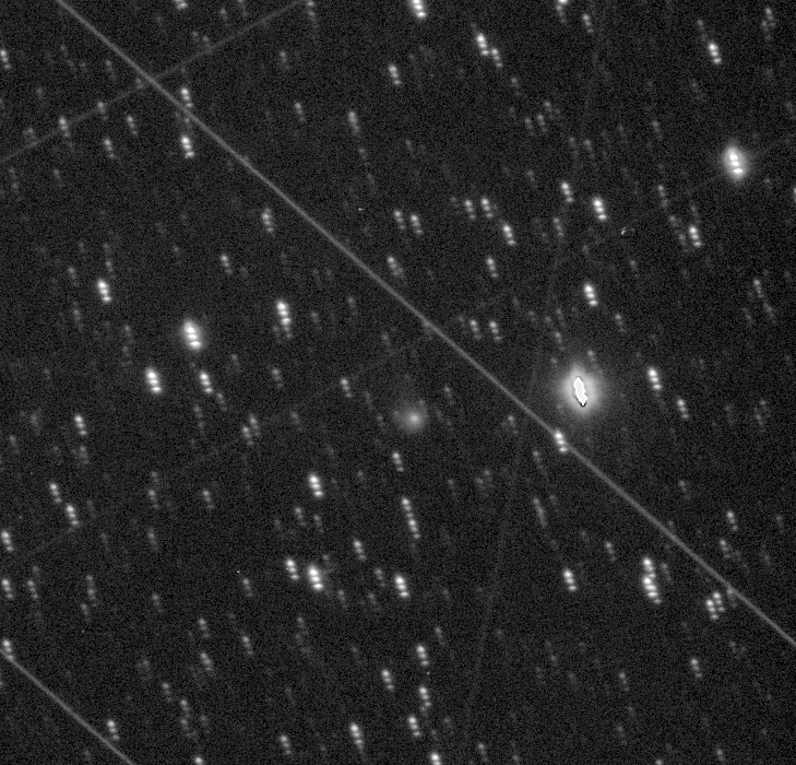 (Copyright Joel Nicolas)Nuclear magnitude (m2) 15 m2 standard deviation 0.1 Aperture radius used for m2 5.6 " r (dist/Sun) 3.933 AU d (dist/Earth) 3.550 AU Right ascension 17 18 57.42 h m s Declination +00 58 59.2 ° ' " MPC report COD A77