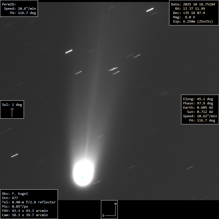 Resulting picture sampling (scale) 0.85 "/pix Observation submission date 2025 Oct 19 08h38m23s Observation modification date 2025 Oct 19 08h40m23s