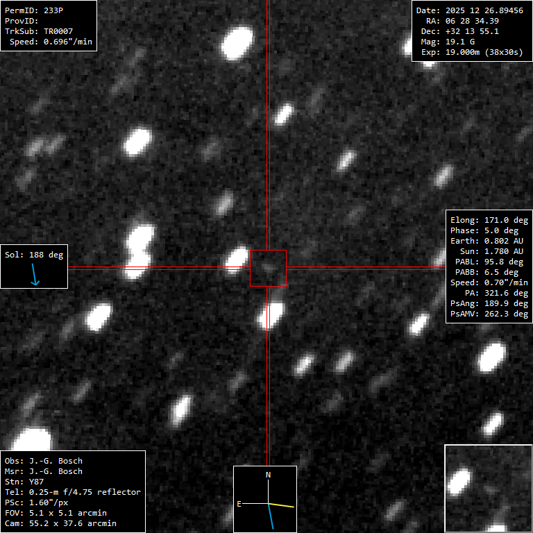 0233P KB2025 12 26.88990 06 28 34.63 +32 13 51.4 19.0 G Y87