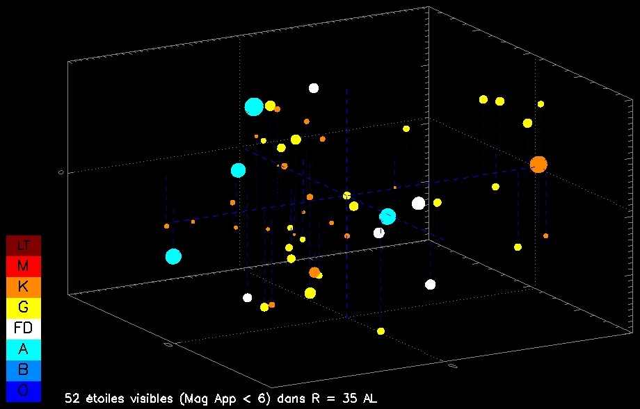 Stellar environment of the Sun, maximum distance = 35 Light Years