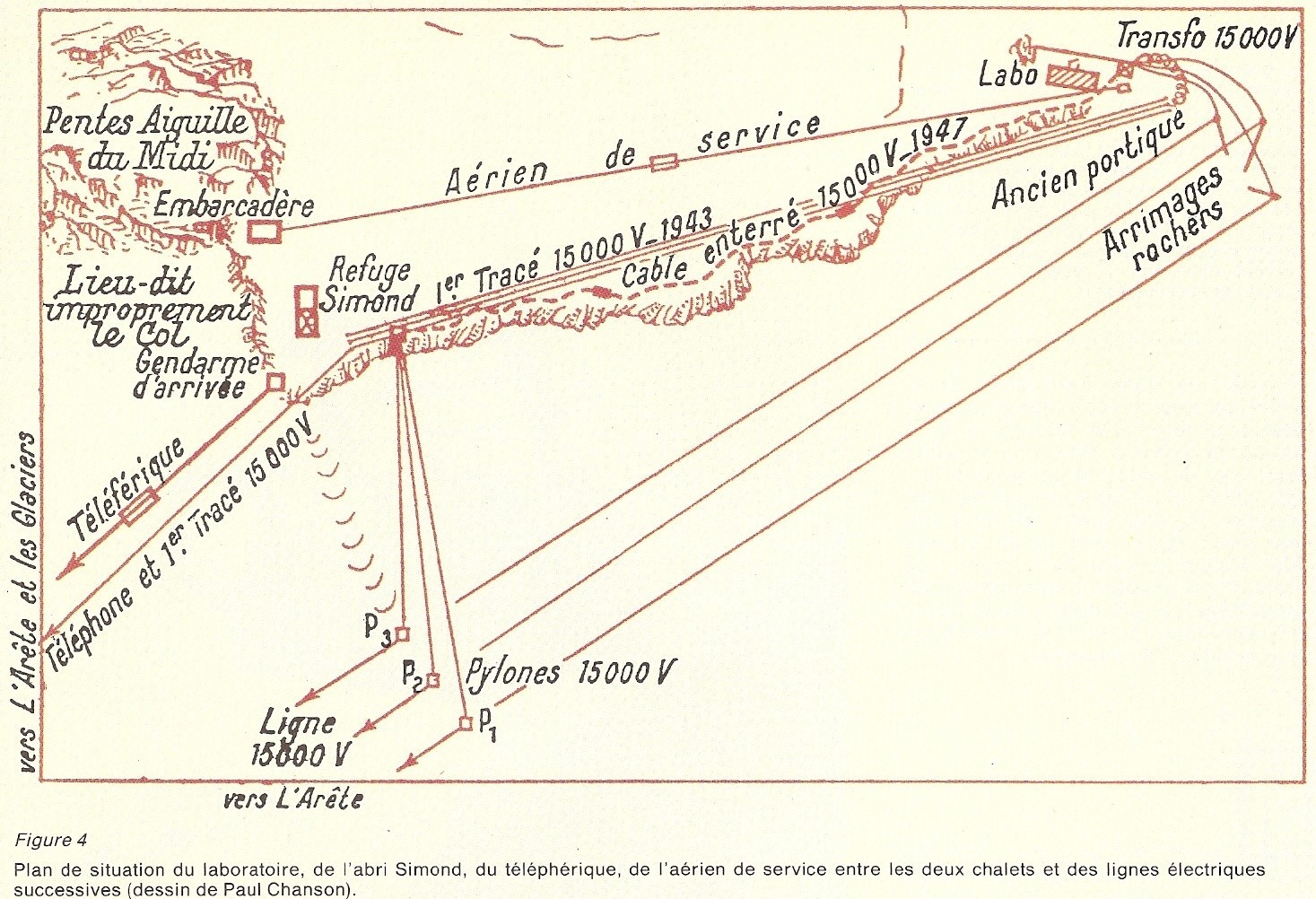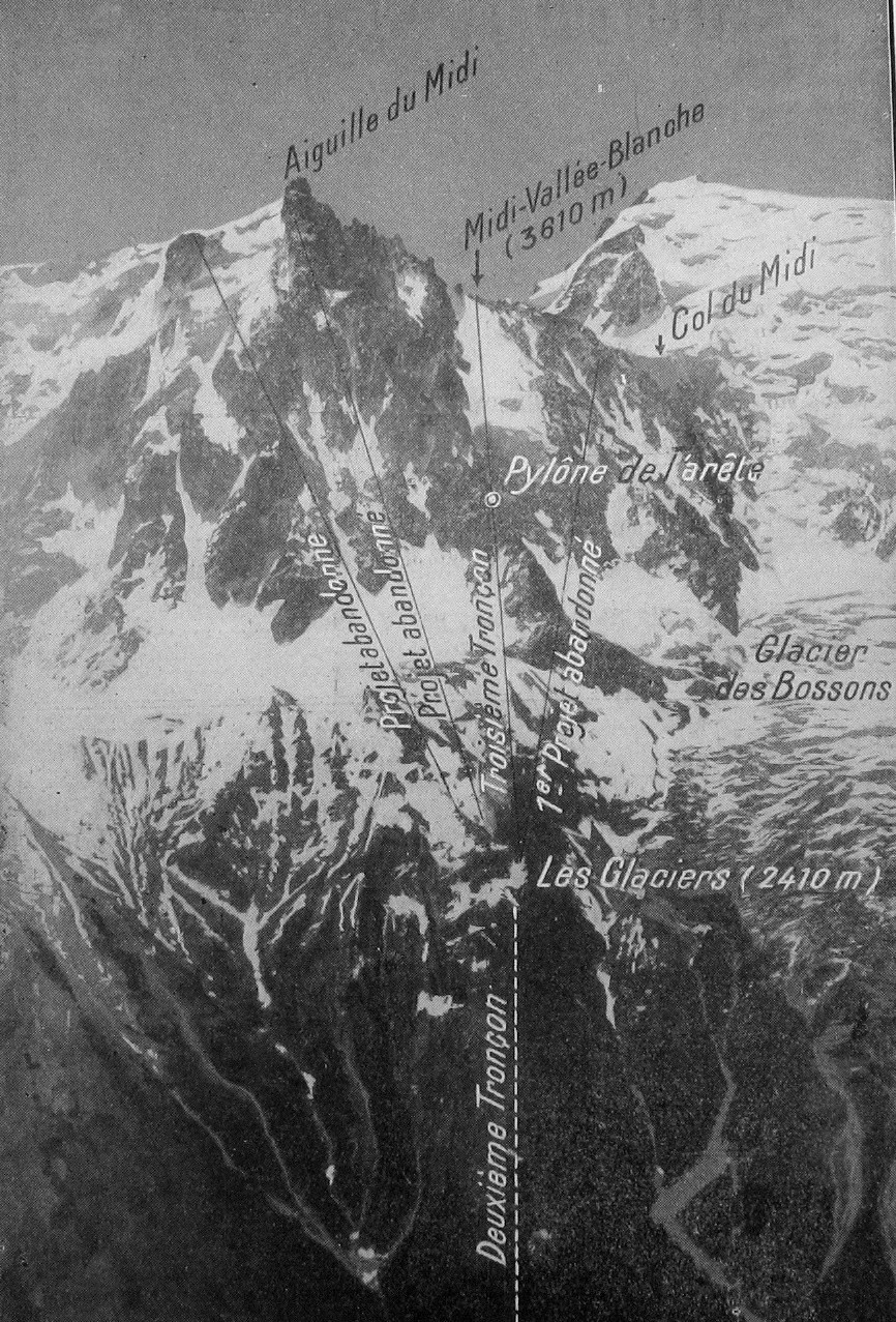 | C1 - Histoire des acces (teleferique des Glaciers, 1924, 1927 et benne de chantier jusqu'au Col du Midi) | ||