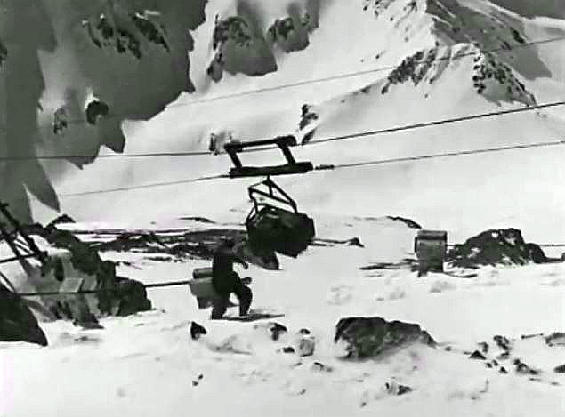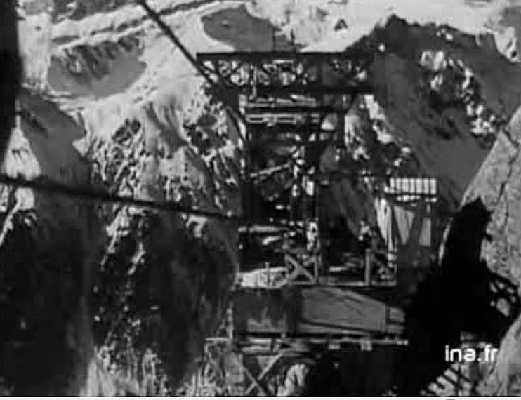 Film INA 1943: telepherique des Glaciers et benne de chantier du Col du Midi