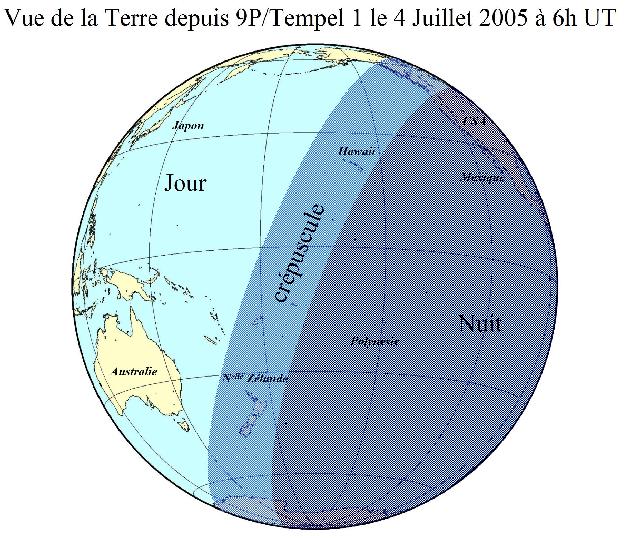 Earth as seen from 9P/Tempel 1 at the time of Deep Impact encounter: regions