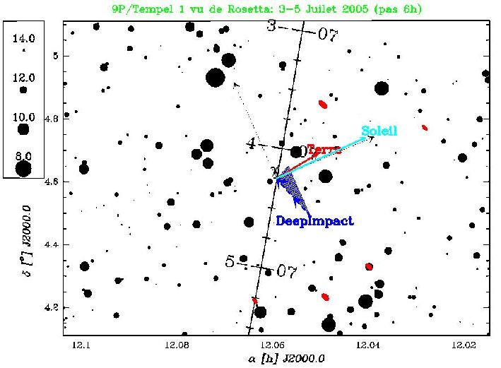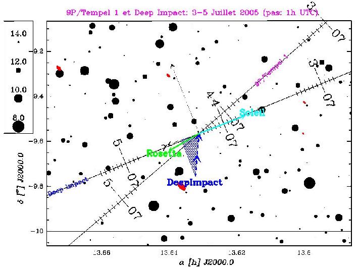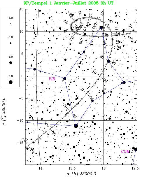 Sky Maps positions of comet 9P/Tempel 1 in 2005